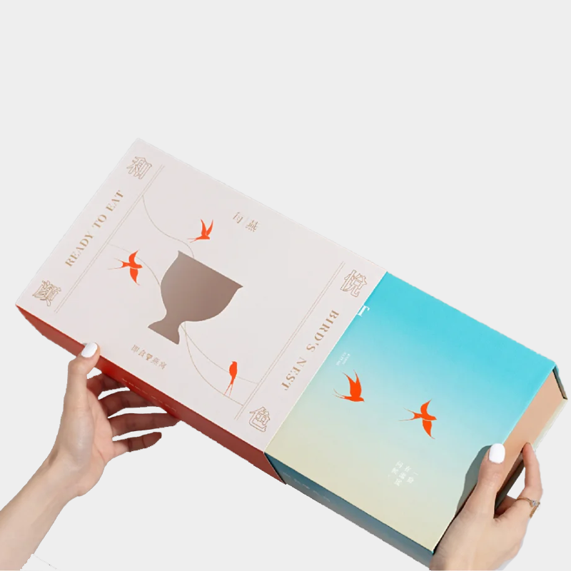 • Features: The card sleeve -style book structure combines storage and display functions, with a cutout window that visually presents the product’s form; four-color printing accurately reproduces the illustrations and brand information of Eastern aesthetics, and is compatible with hot stamping, UV coating, embossing and other processes. It is recyclable and biodegradable, perfectly meeting the quality and environmental protection requirements of high-end health supplement gifting scenarios.