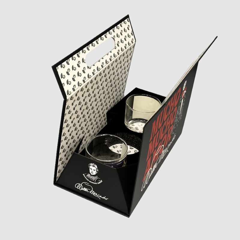 - Advantages : Made of 1200g coated paper , thick material with matte lamination for a premium feel; UV-printed brand logo enhances memorability; smooth opening and closing of the top and bottom cover structure; built-in black flocked inner tray tightly wraps glass products, effectively reducing shock and preventing collisions.