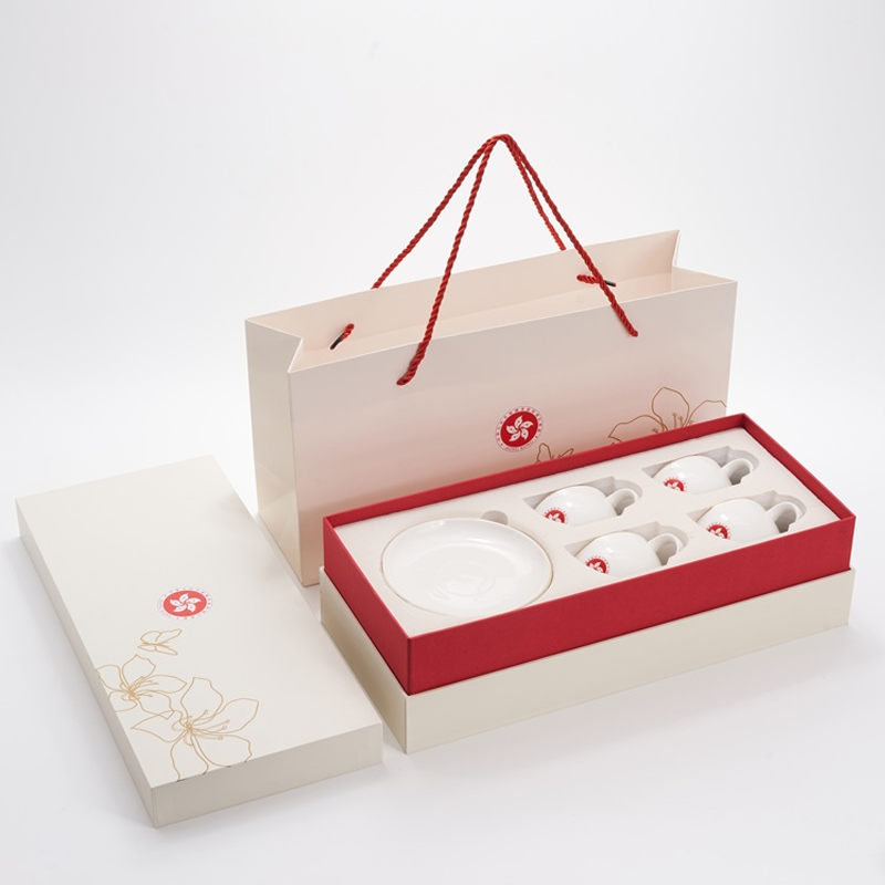 - Advantages : 1200g coated paper gift box + 250g paper bag; the gift box is durable and not easily deformed , and the matching paper bag makes it easy for everyone to take things ; four-color printing process reproduces the details of the pattern, and the gold foil lines add rich layers and a high-end feel; the custom EVA inner tray fits the tableware precisely, effectively absorbing shock and preventing scratches, avoiding bumps and damage during transportation and storage; a matching tote bag with a red handle combines aesthetics and practicality, enhancing the sense of ceremony and portability when delivering the gift.