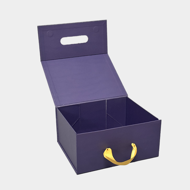 This folding tote box combines a minimalist , sophisticated look with practicality . The matte finish paired with a gold-stamped logo exudes a refined American-style luxury . The addition of a handle to the four-corner adhesive folding box eliminates the need for a separate shopping bag, making it suitable for offline stores, holiday gifting, and other occasions.
