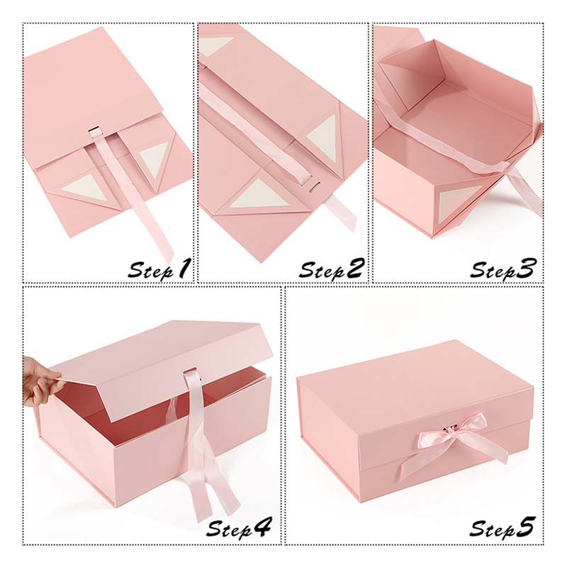 • Advantages : The box is made of 1200g coated paper, and the four corners are glued for a sturdy and durable finish ; the scratch-resistant film effectively resists wear and tear during transportation and storage; it supports full customization, allowing customers to choose different printing techniques for brand logos and patterns to meet individual needs; multiple sizes are available to fit various products , and when unfolded, it offers ample storage space , while when flattened, it is only 1mm thick , effectively saving storage space and cross-border shipping costs; it comes with a matching ribbon bow decoration, giving customers a more enjoyable unboxing experience.
