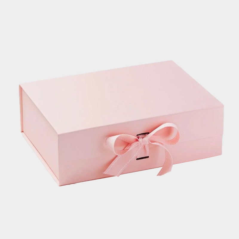 This ready-to-use folding gift box, in cherry blossom pink with a matching ribbon bow, is romantic and exquisite, perfectly suited for the packaging needs of women’s clothing, accessories, and other categories. Its ample stock, controllable costs, and outstanding appearance make it popular with e-commerce merchants and brands. The flattened storage design also significantly reduces warehousing and transportation costs.