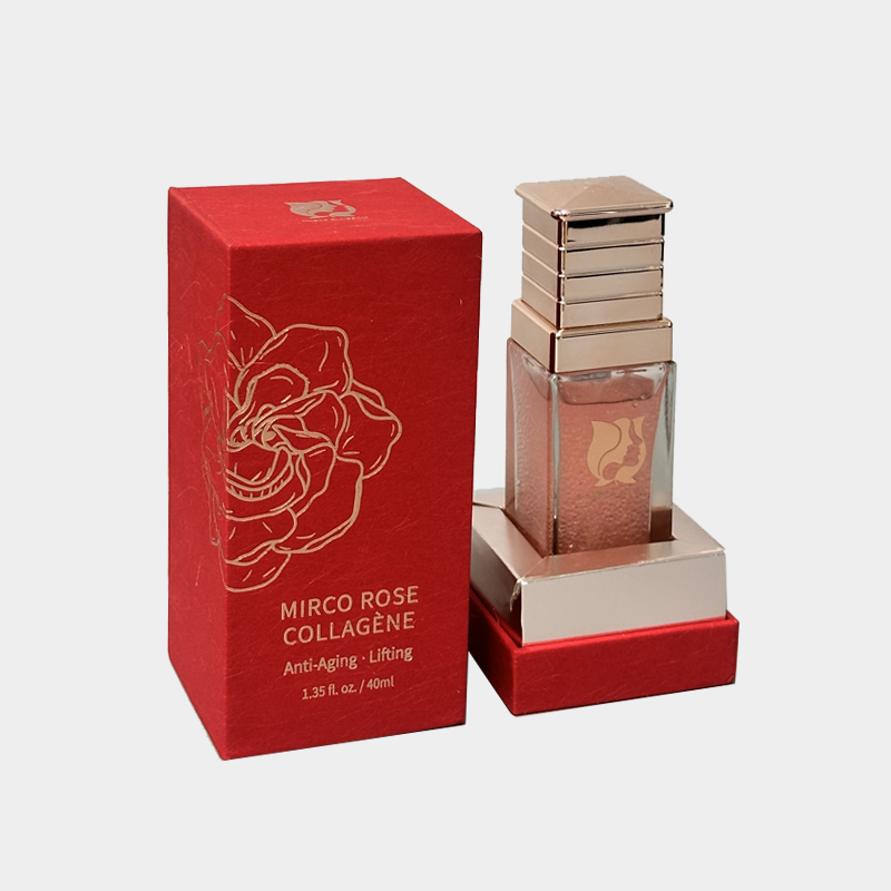 - Advantages : The box is made of FSC-certified specialty paper, with a gold-stamped rose pattern on the surface to enhance its sophistication, and an embossed logo to deepen brand recognition; the built-in silver card tray accurately supports the product, combining storage safety and aesthetics.