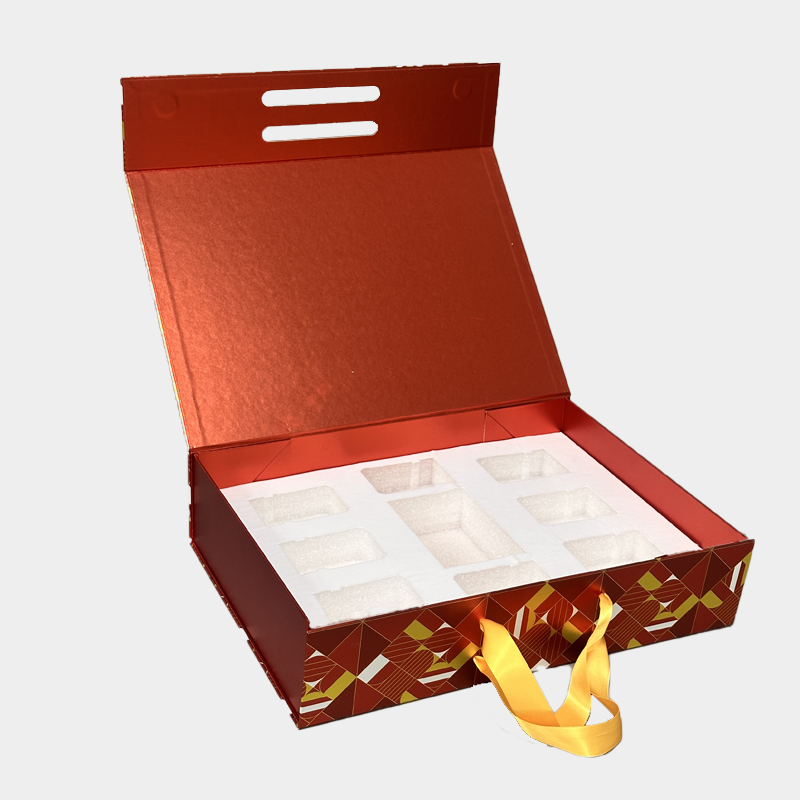 This gift box is a New Year’s special edition from a bird’s nest brand. It features a ribbon handle for easy packing and taking home after shopping; the four corners have a folding design for convenient storage and transportation while also being strong enough to support the weight of bird’s nest products; and it comes with a flocked inner tray to protect the product.