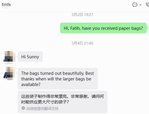 A reply from our Austrian customer: after comparing prices from three different suppliers, he ultimately decided to order 2000 paper bags from us because our packaging solution offered the best value for money. Thank you for your trust.