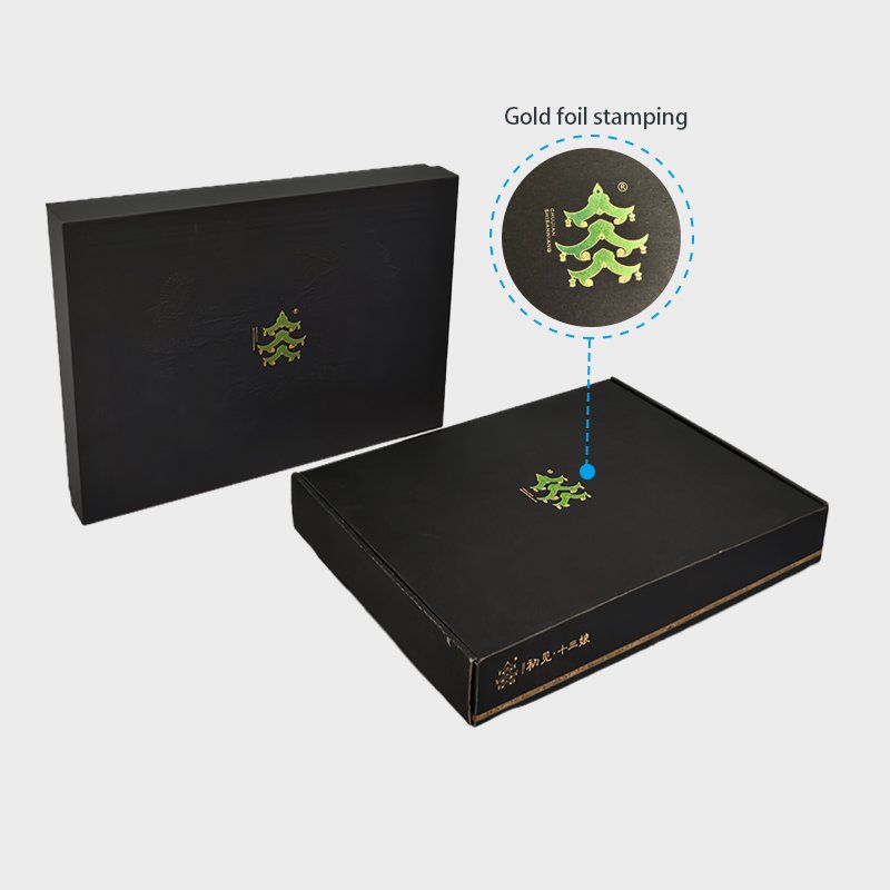- Simple yet high-end : The entire packaging is made of black cardboard, which matches the clothing brand’s simple yet high-end positioning; the brand logo is presented with a gold foil stamping process. The gold stands out exquisitely against the black background, which not only enhances the brand recognition, but also makes the packaging quality match the brand quality.